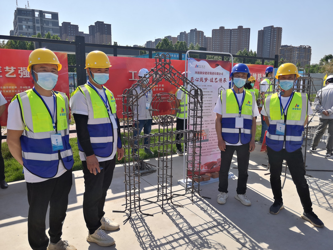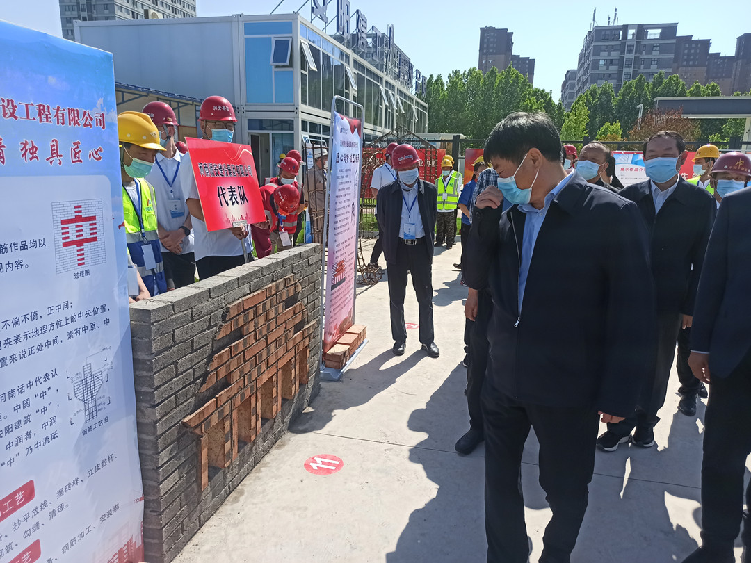 5月16日,由安陽(yáng)市住建局、安陽(yáng)市城建交通水利工會(huì)共同舉辦的“匠心筑夢(mèng) 技藝傳承”2022年度安陽(yáng)市建筑行業(yè)工匠技能展示活動(dòng)在安陽(yáng)師范學(xué)院教學(xué)實(shí)驗(yàn)綜合樓項(xiàng)目工地舉行。集團(tuán)公司常務(wù)副總楊金貴、副總經(jīng)理王福民、王超帶隊(duì)參加了活動(dòng)。